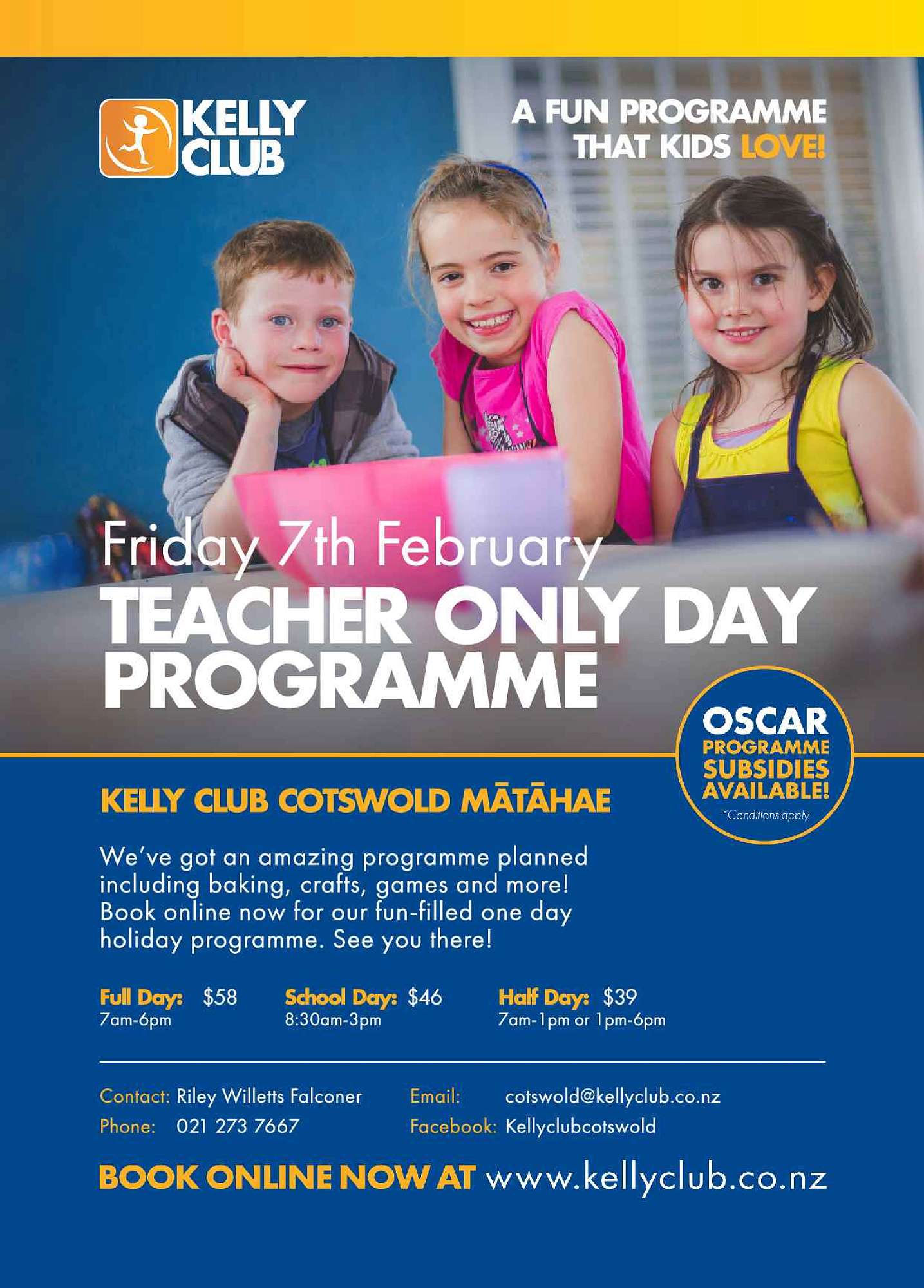Kelly Club will also be offering programmes for the scheduled Staff Only Day on Friday 7th February, and future Staff Only Days this year.
