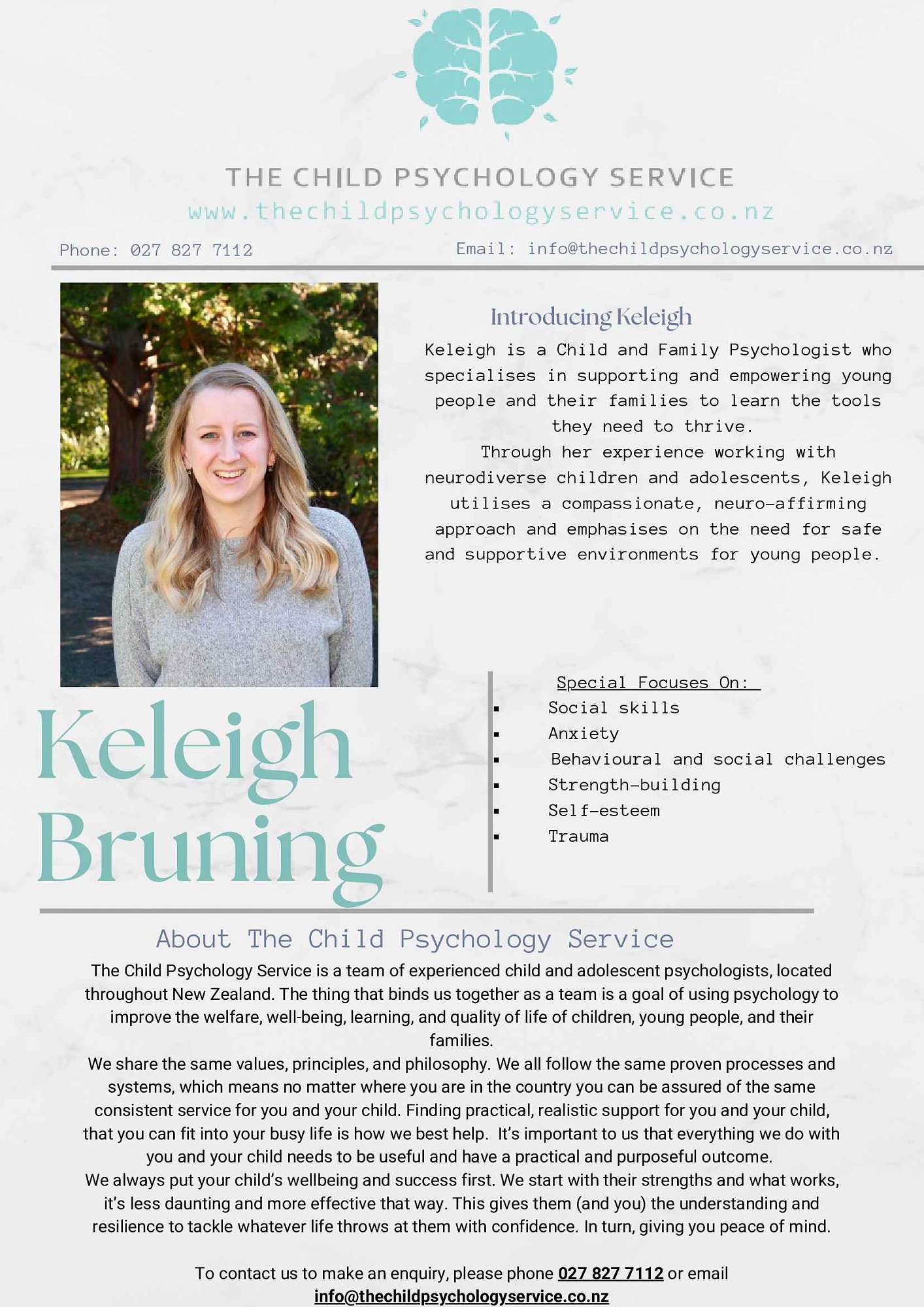 The Child Psychology Service has started a new practice in Papanui Christchurch with Psychologist Keleigh Bruning who has immediate availability.