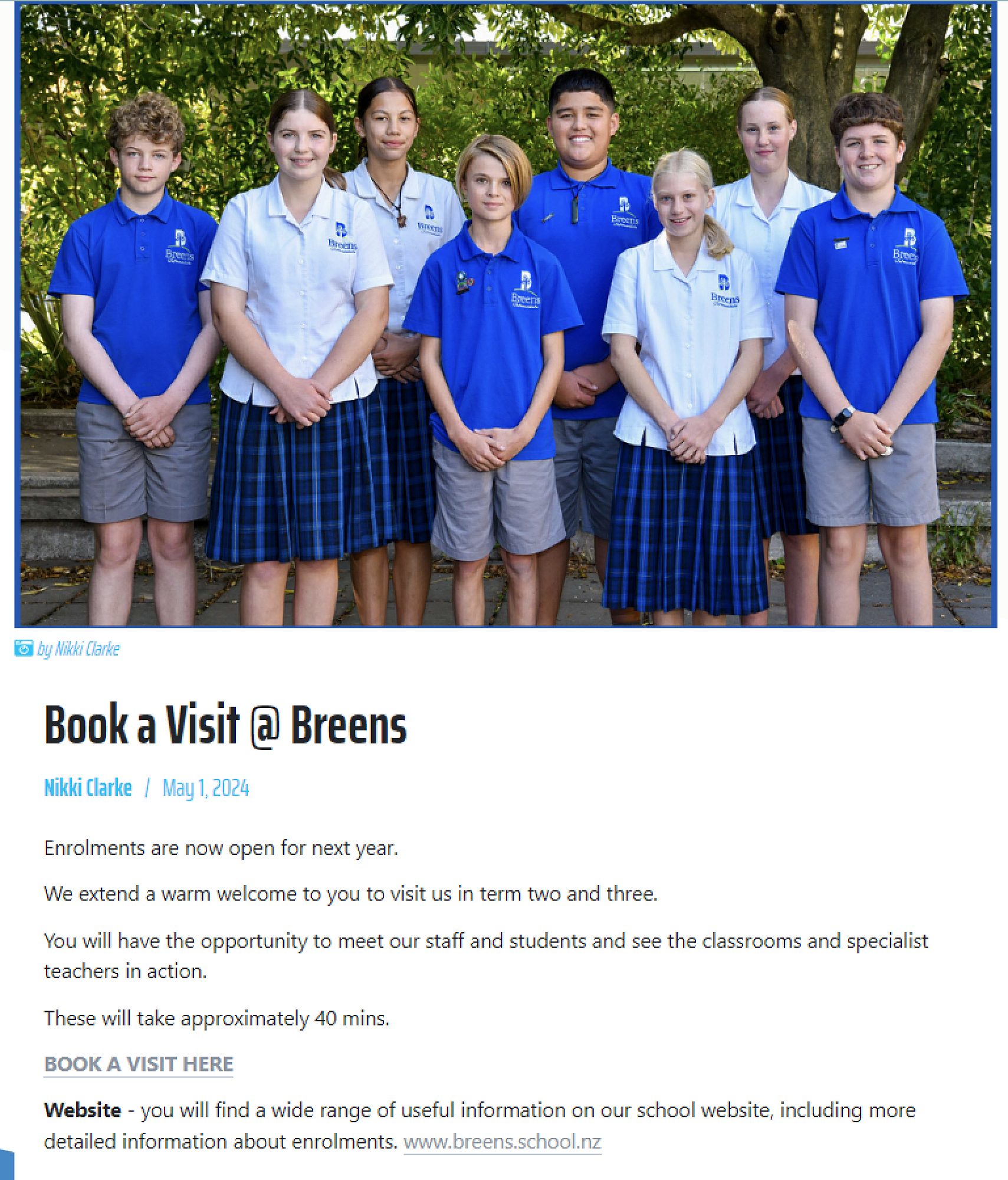 2025 enrolments are now open for Breens Intermediate School and you can find enrolment information at this link. 2025 Enrolments close on 31st August