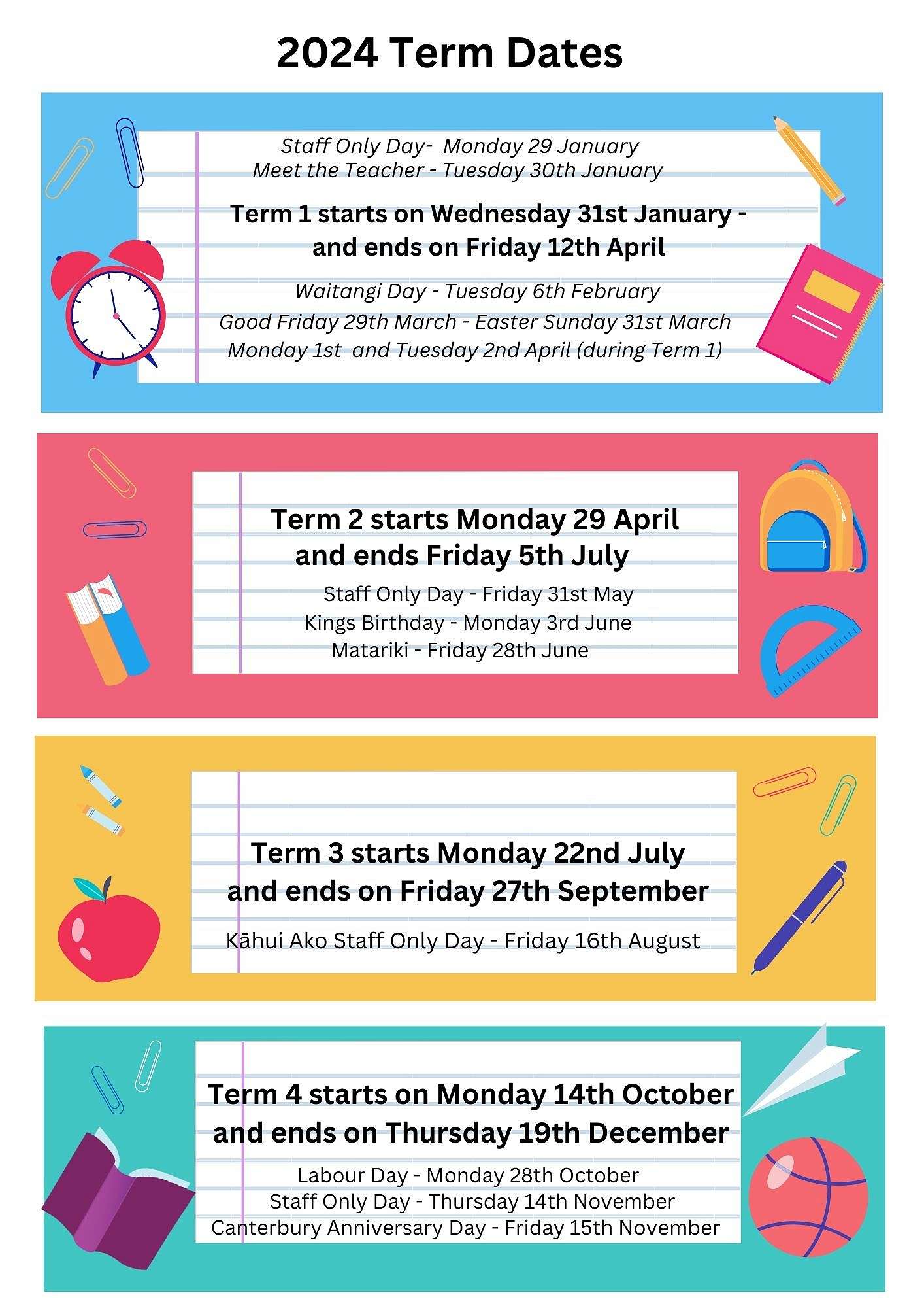 The Board have now confirmed 2024 Terms Dates including 3x Ministry allocated Staff Only Days