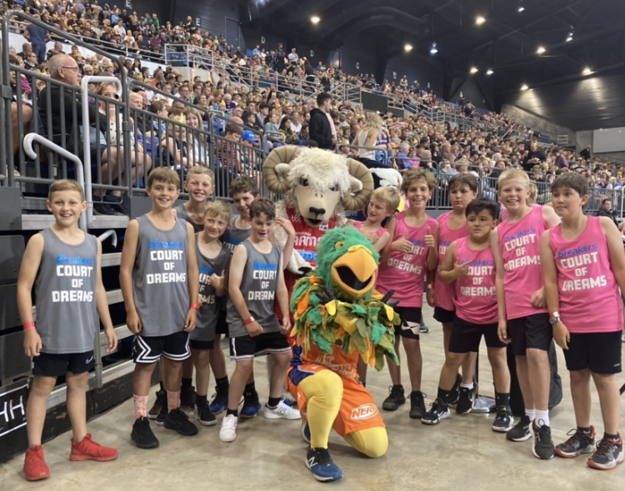 The Cotswold Colts were thrilled to be invited to play in the curtain raiser against the Merrin Magic over the holiday period. They lost by one goal in the final seconds of the game, but loved the experience of meeting the players and mascots, being the “fan tunnel” as the players ran onto the court, and playing basketball in front of a sold out crowd.
