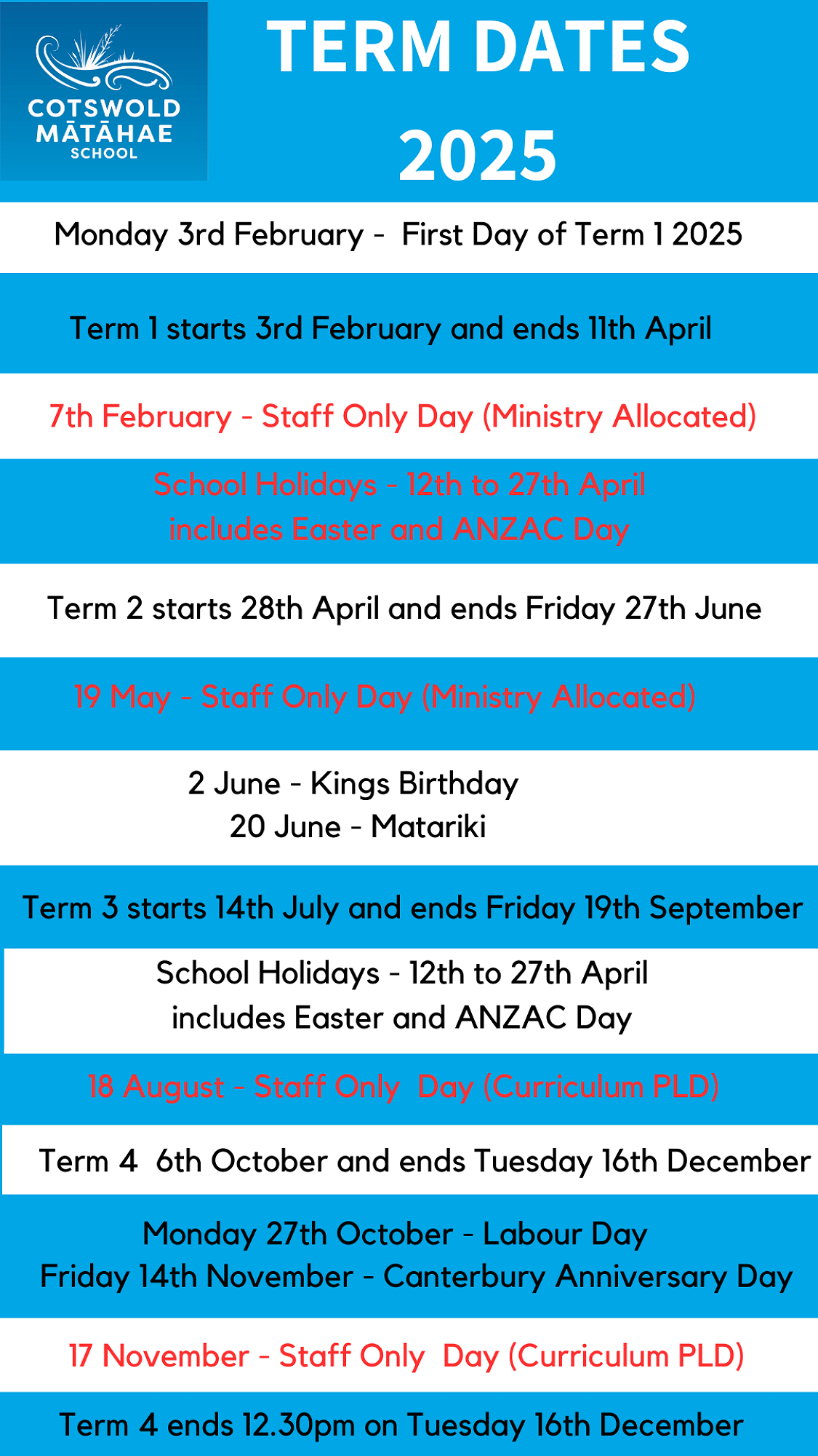 Updated Term Dates 2025 — Image by: Marie Bianco