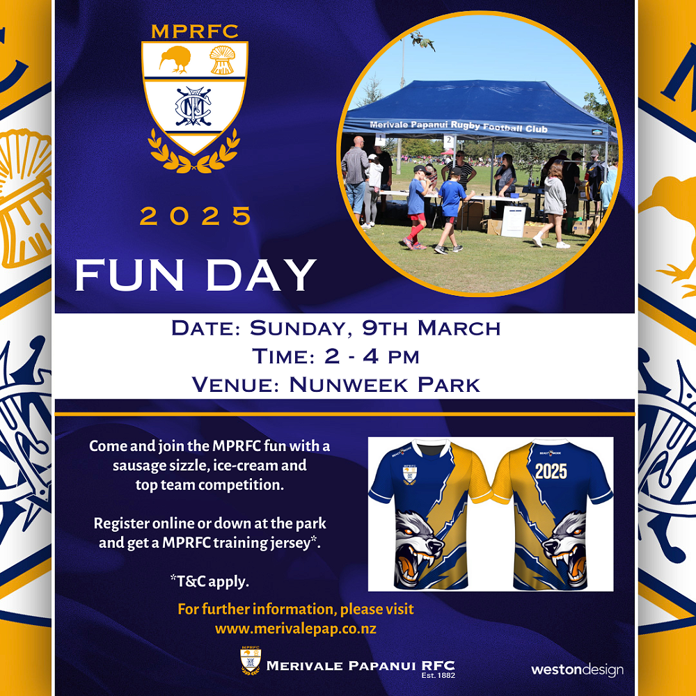 Come along to Merivale Papanui Rugby Football Club’s Fun day
