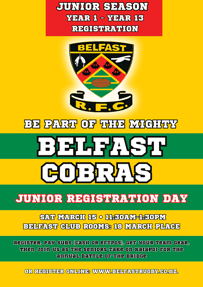 Belfast Cobras - Junior Registration Day - 15th March 11.30-1.30pm