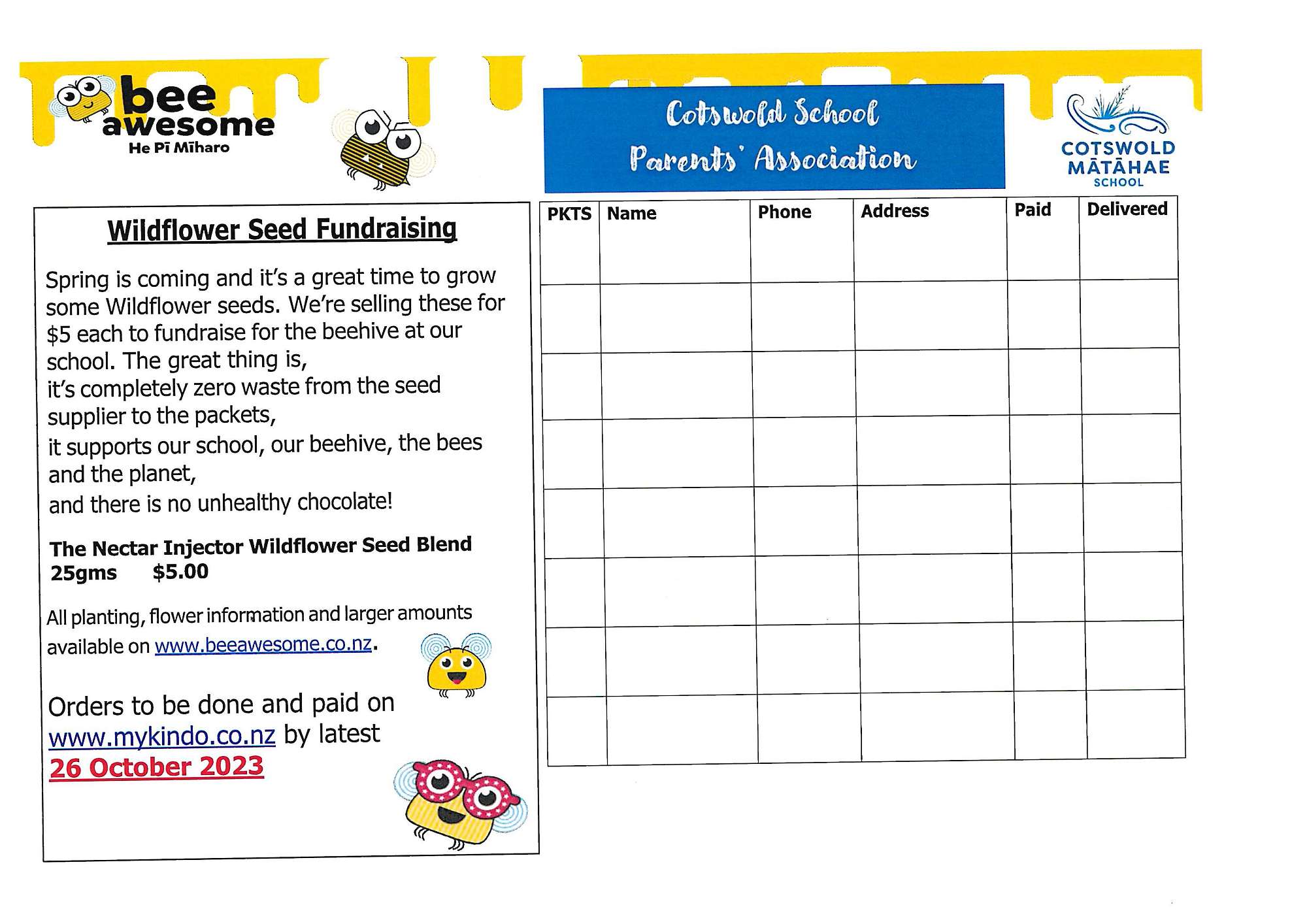 Spring is coming and its a great time to grow some wildflower seeds. We're selling these for $5 each to fundraise for the beehive at our school. Look out for the order form in your child's bag !