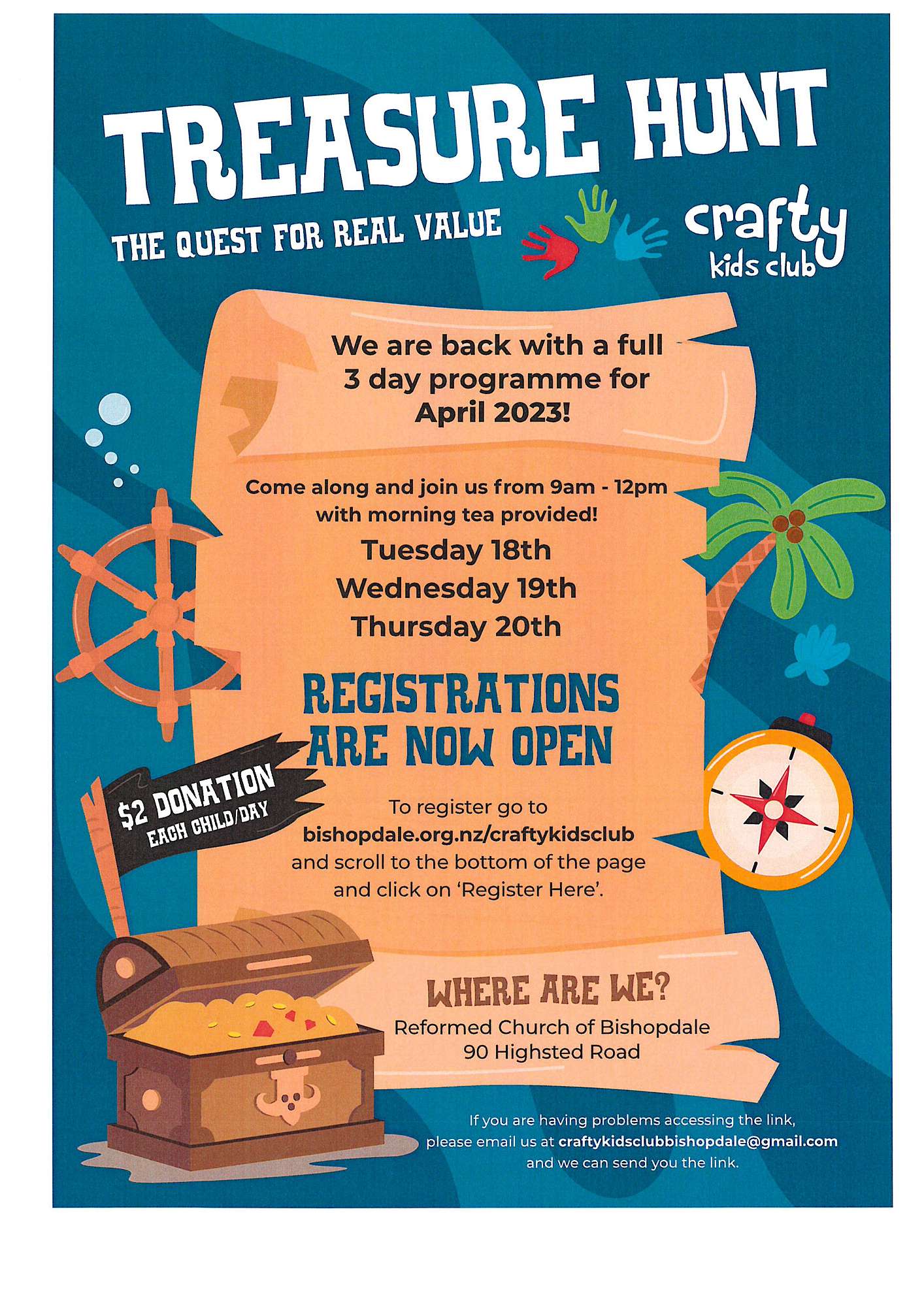 Register via the online link: - Bishopdale.org.nz/craftykidsclub
