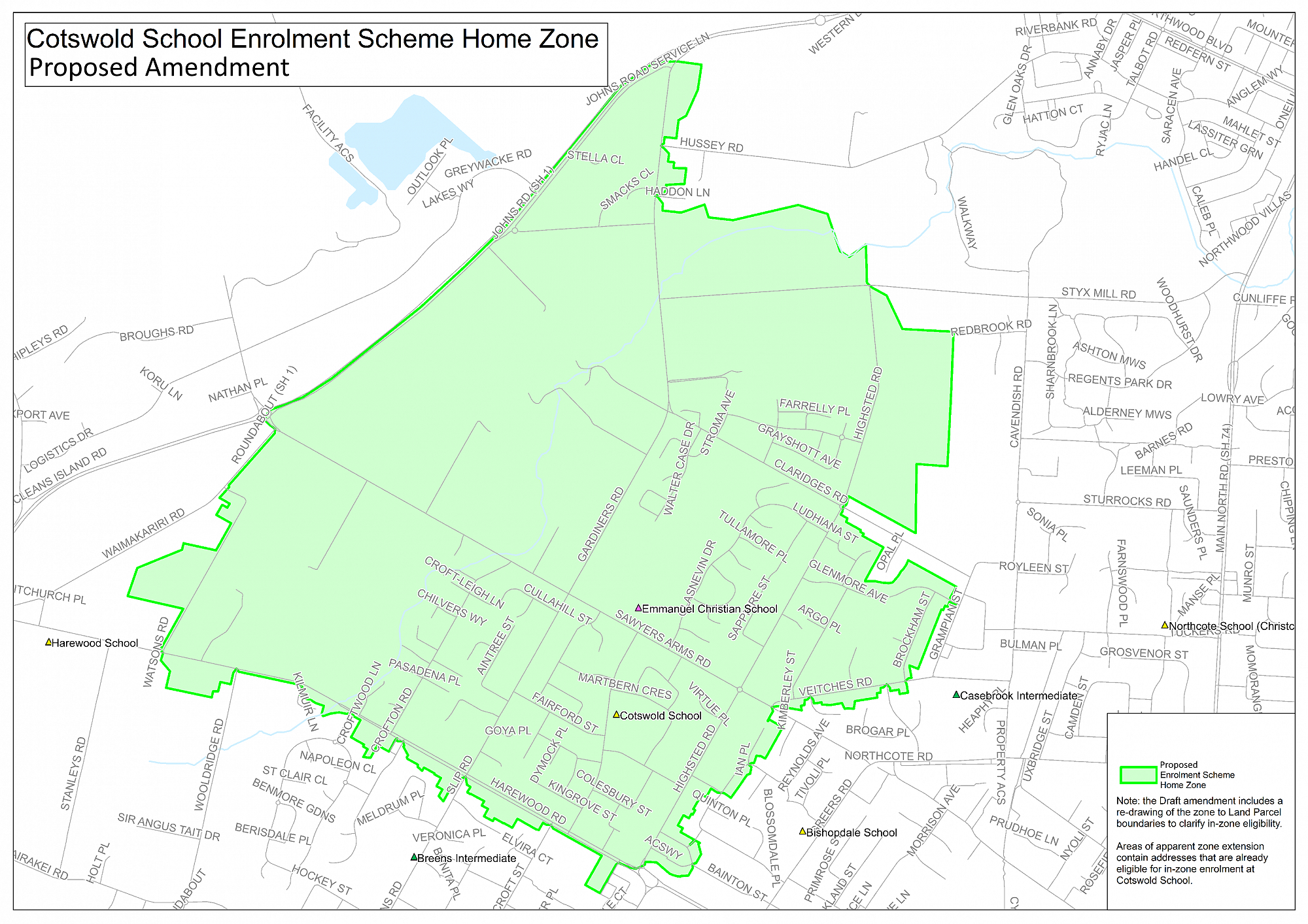 Currently our home zone map is drawn to road boundaries and needs to be updated to land parcel boundaries to more precisely identify the properties that fall within our home zone. This will also clarify the home zone boundary for local residential development that is underway within our area.