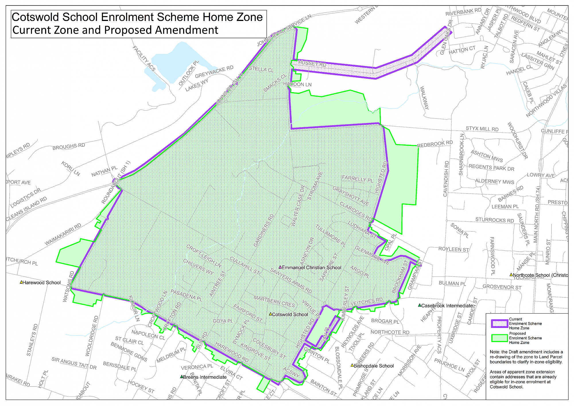 You can read about this proposal at https://consultation.education.govt.nz/education/cotswold-school-enrolment-scheme-amendment/ and complete the survey to place your feedback.