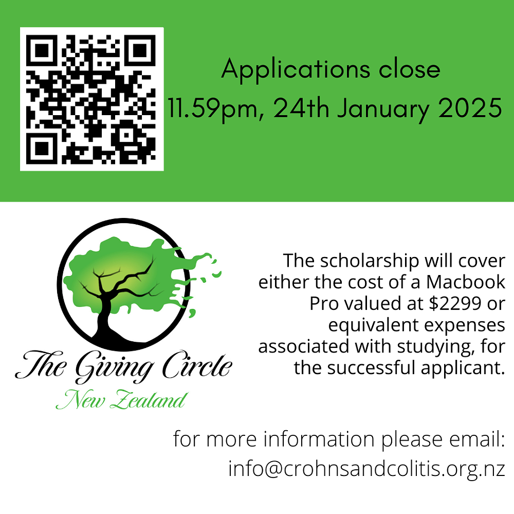 This scholarship, established in 2020 by a group of generous anonymous donors, aims to support young people with Inflammatory Bowel Disease (IBD) in their educational journey. Administered by Crohn’s and Colitis New Zealand Charitable Trust, this award helps our community members achieve their dreams.