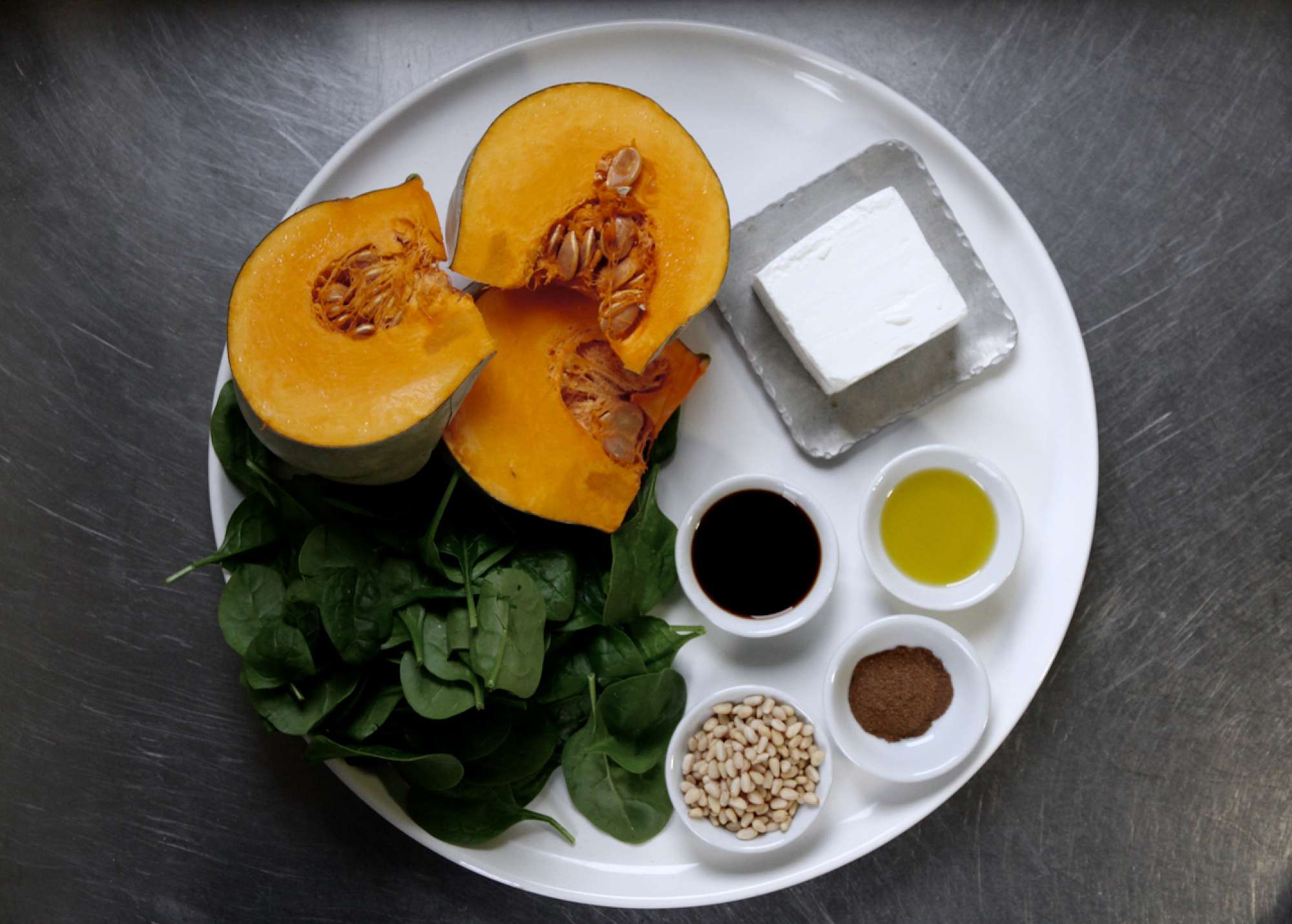 Pumpkin, feta and spinach salad