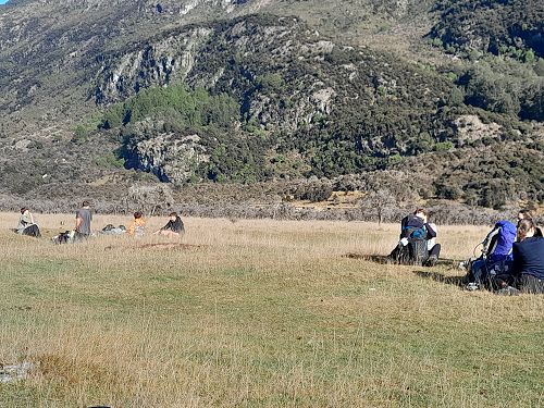 The adventure began with excitement and a few nervous faces as we shouldered our packs and left civilisation behind. The Greenstone and Caples Valleys, located near Lake Wakatipu, are well known for their natural beauty, rich history, and excellent tramping tracks. Our group was lucky to experience these valleys in near-perfect winter conditions — while the air was cold, especially at night and early morning, the weather stayed reasonable throughout our journey. Clear skies during the first day offered breathtaking views of the surrounding mountains, and the chilly mornings added to the true wilderness experience.