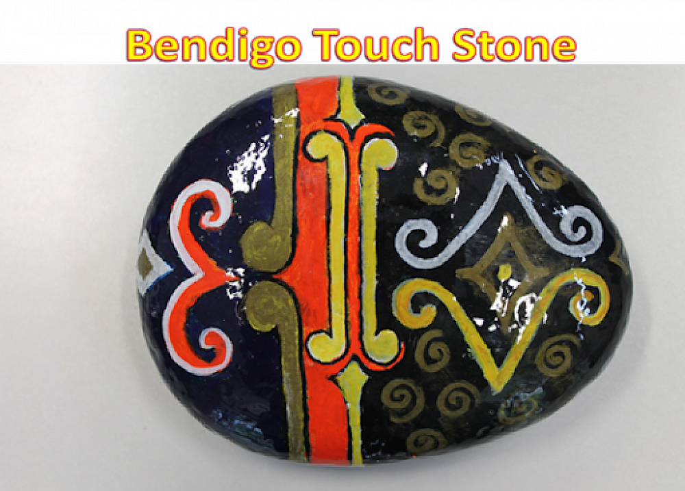 The Bendigo touch stone has been placed by the Bendigo School Site sign at the entrance to the remains of the school site. The school site is on the way up to the Bendigo Reserve and Welshtown. The last