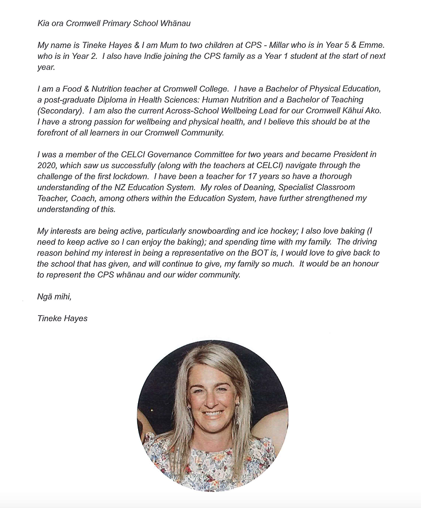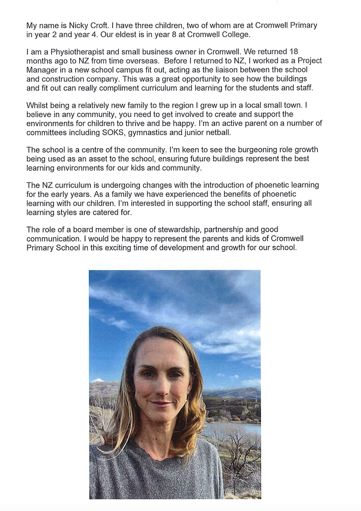 Board members are the kaitiaki / caretakers of the school community’s vision and values.