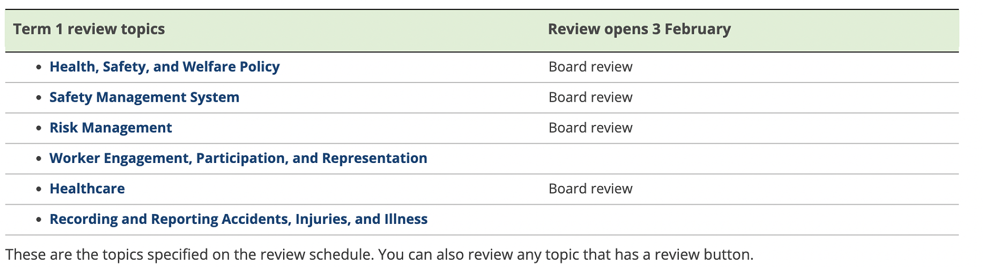 Click the Policy Review button at the top right-hand corner of the page.