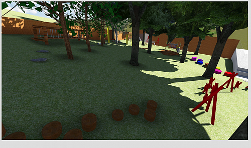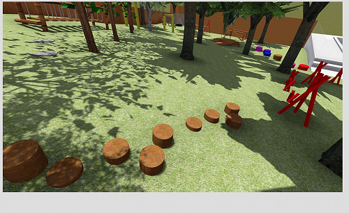 The forest will remain, primarily, a forest. Pathways through the forest will be created at low level. Small, imaginative play areas will be developed. A platform at the top of the area will be able to be used as a fort, a castle, a "hide" for watching wildlife. The secret garden will be retained and hold a stone circle and hut-building frames. Some additional, wooden equipment will provide more places to climb and "turn". Learning opportunities for the area will be enhanced, for example imaginative story telling and role play, science activities, maths, environmental study.