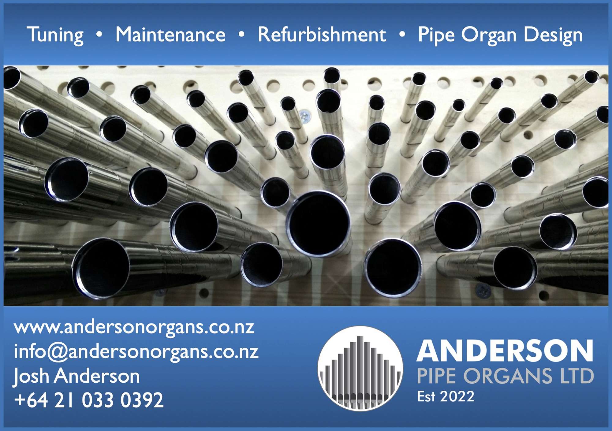 Anderson Pipe Organs was founded in 2022 by Josh Anderson with the aim of providing high-quality tuning, maintenance and refurbishment services for pipe organs throughout New Zealand. Josh has a wide range of experience working with pipe organs of all different sizes and styles, both here in New Zealand and in the United Kingdom.