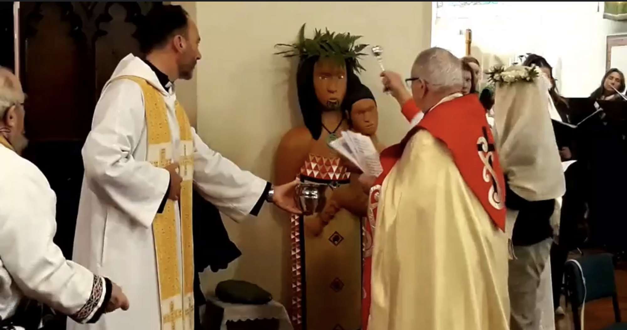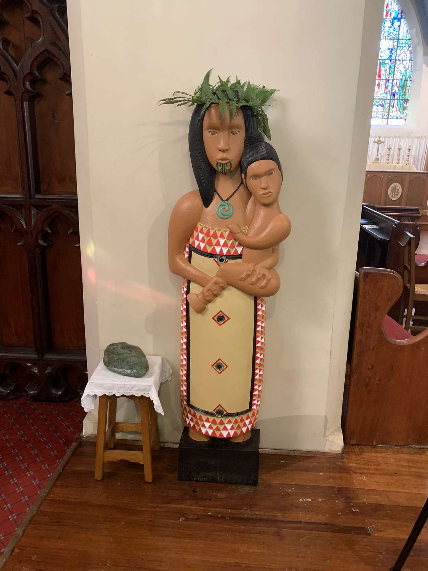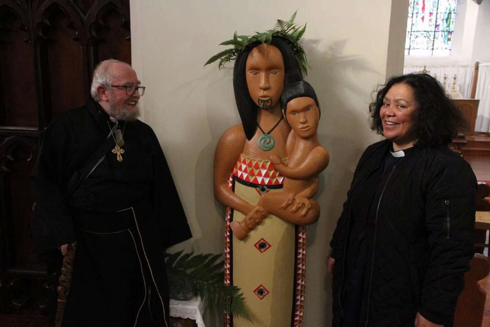 In the past couple of years we have been blessed to host several Māori events here - each time Māori friends would enjoy the beauty of the church, then ask ‘where is the tukutuku?’, ‘Where is the whakairo?’, ‘where is anything Māori?’... Today we have the joy and privilege of the unveiling and blessing of Hākui Meri Tapu o Ōwheo carved by Rongomai-Tawhiti Parata-Taiapa. We now have the joy and privilege of seeing Te Ariki and Te Whaea standing in the middle of this whare karakia, looking at us with Māori faces.
