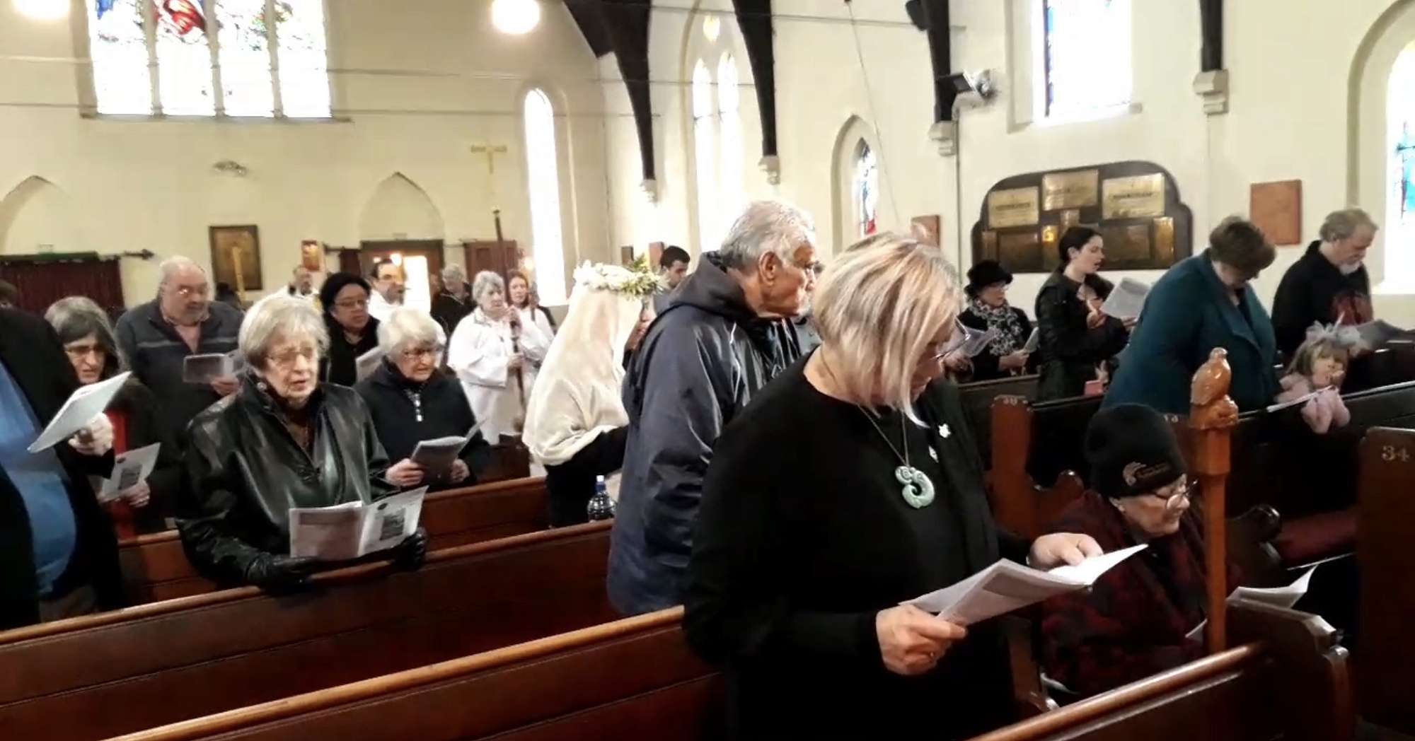 An impromptu karanga - call sounded out from a member of the congregation, followed by the choir singing Ka Waiata - A Song to Mary to welcome this new addition to the rich tapestry of All Saints.