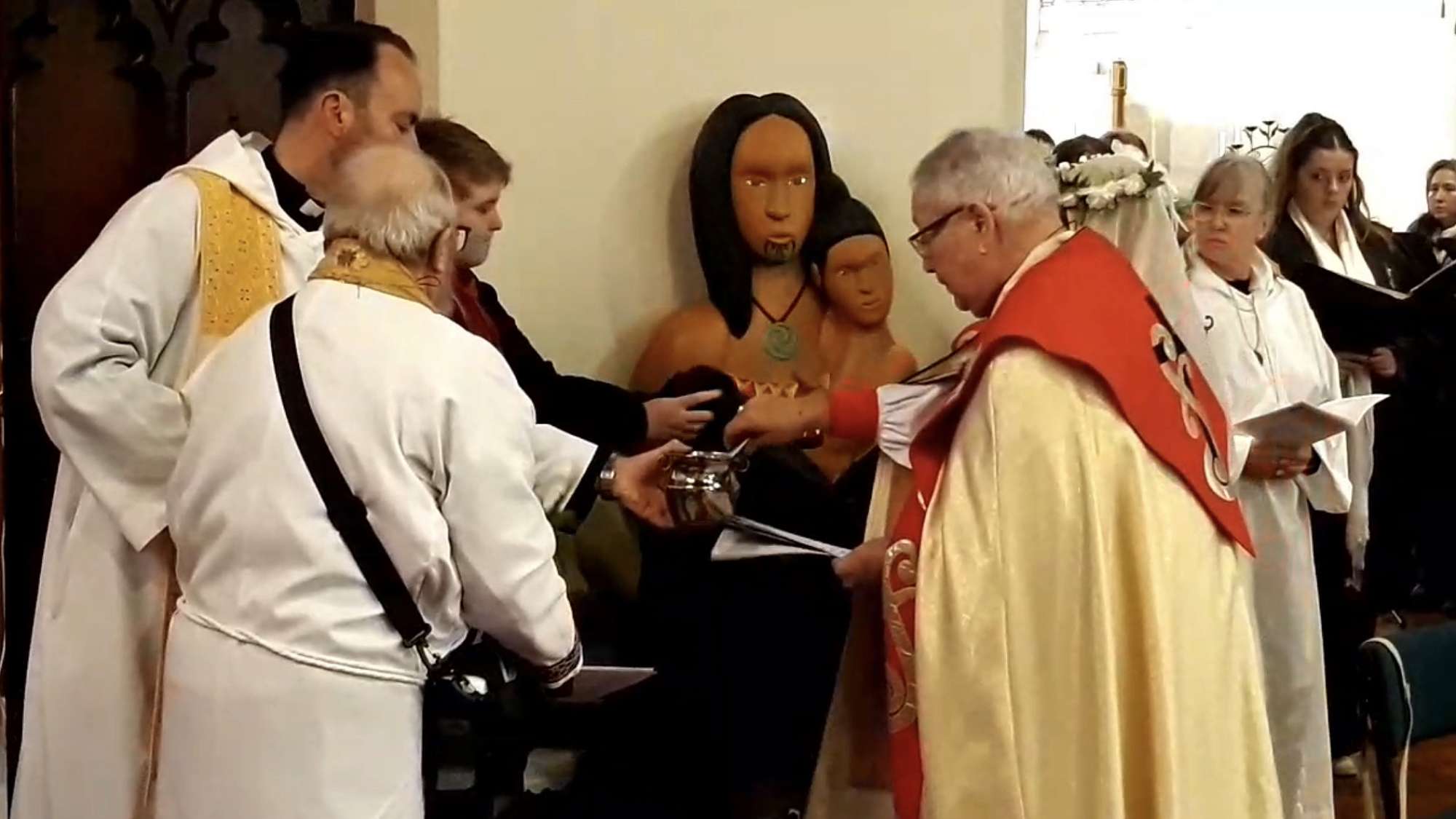 During the service the sculpture was unveiled by Māori members of the Parish and blessed by Pihopa Richard.