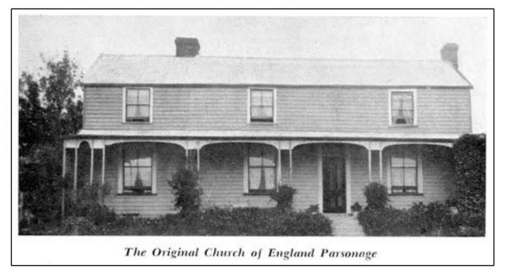 two storey weatherboard house set well back from the road on the 26 acre glebe: the only known