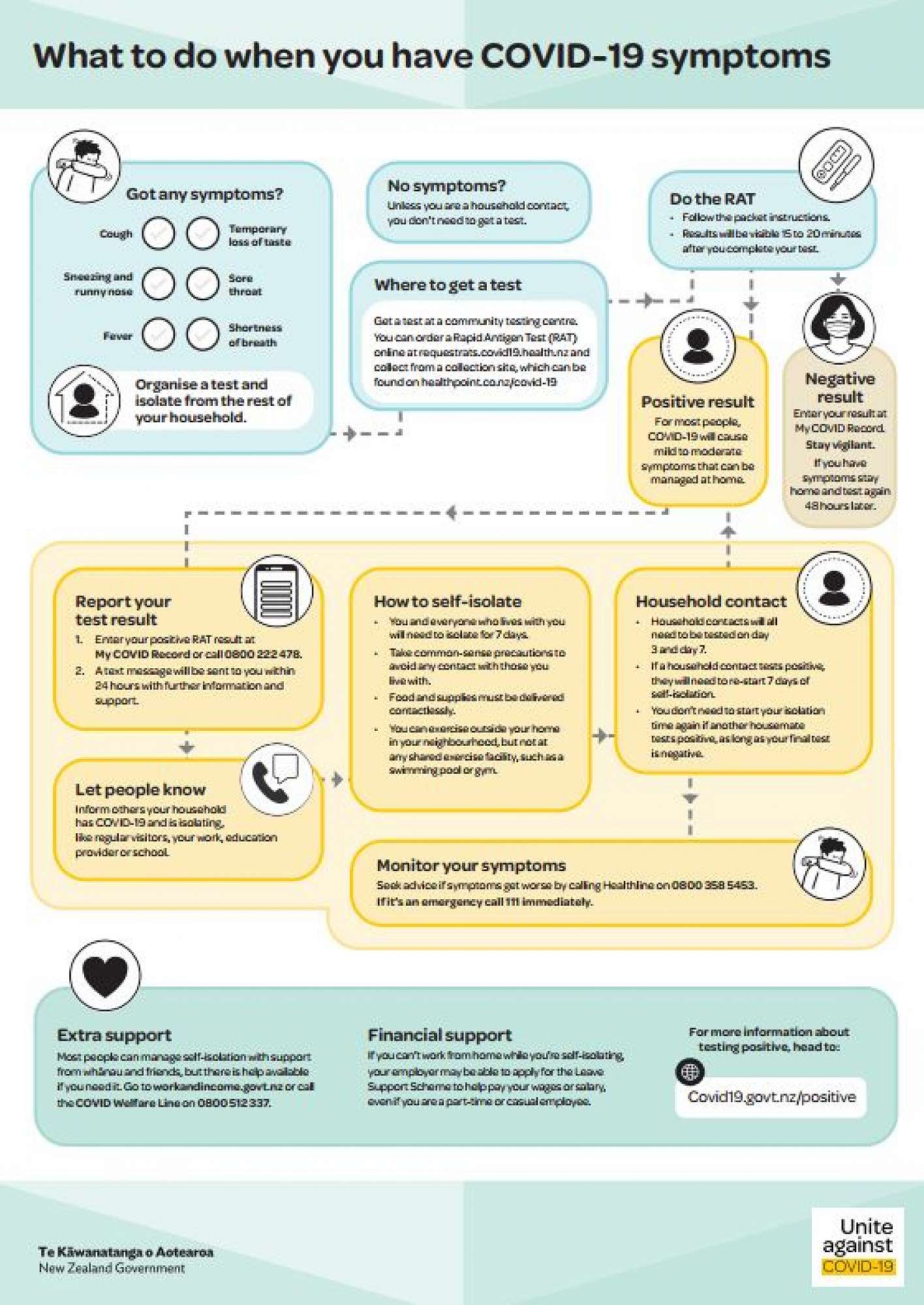 If RAT test positive: Upload RAT result to My Covid Record - this will link you into the system allowing you to get GP care by phone (this will be reinforced when the RATs are given). If you need help with doing this upload, you can call 0800 222 478.