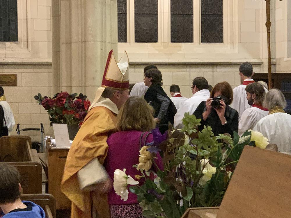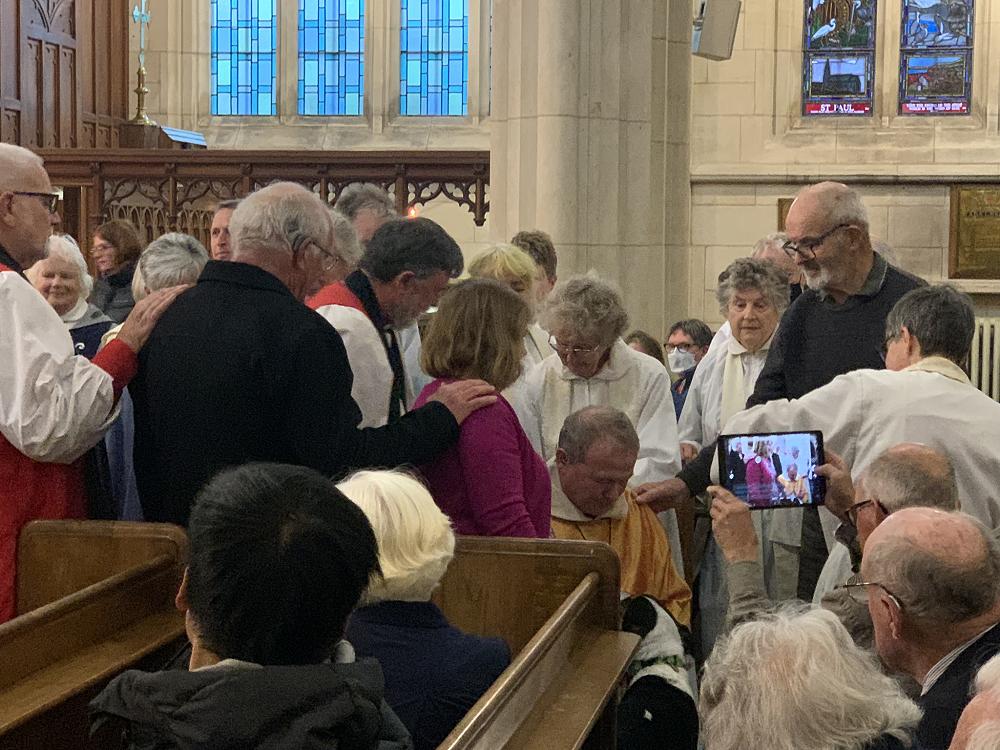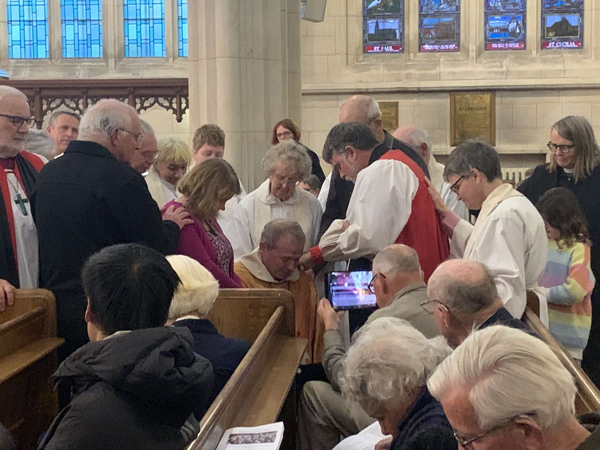 Prayers of Intercessions (led by St Martha's congregation) included moments for people to gather around and pray for +Steve and Lorraine, with Archbishop Phillip Richardson completing the prayers.