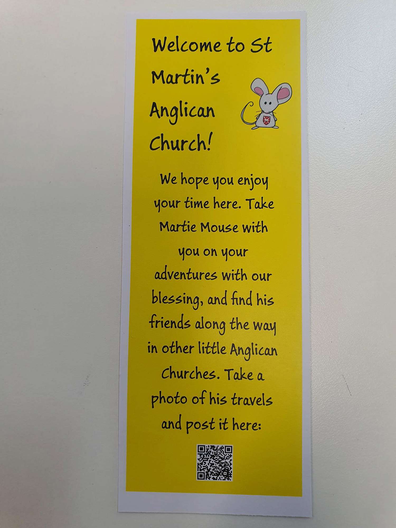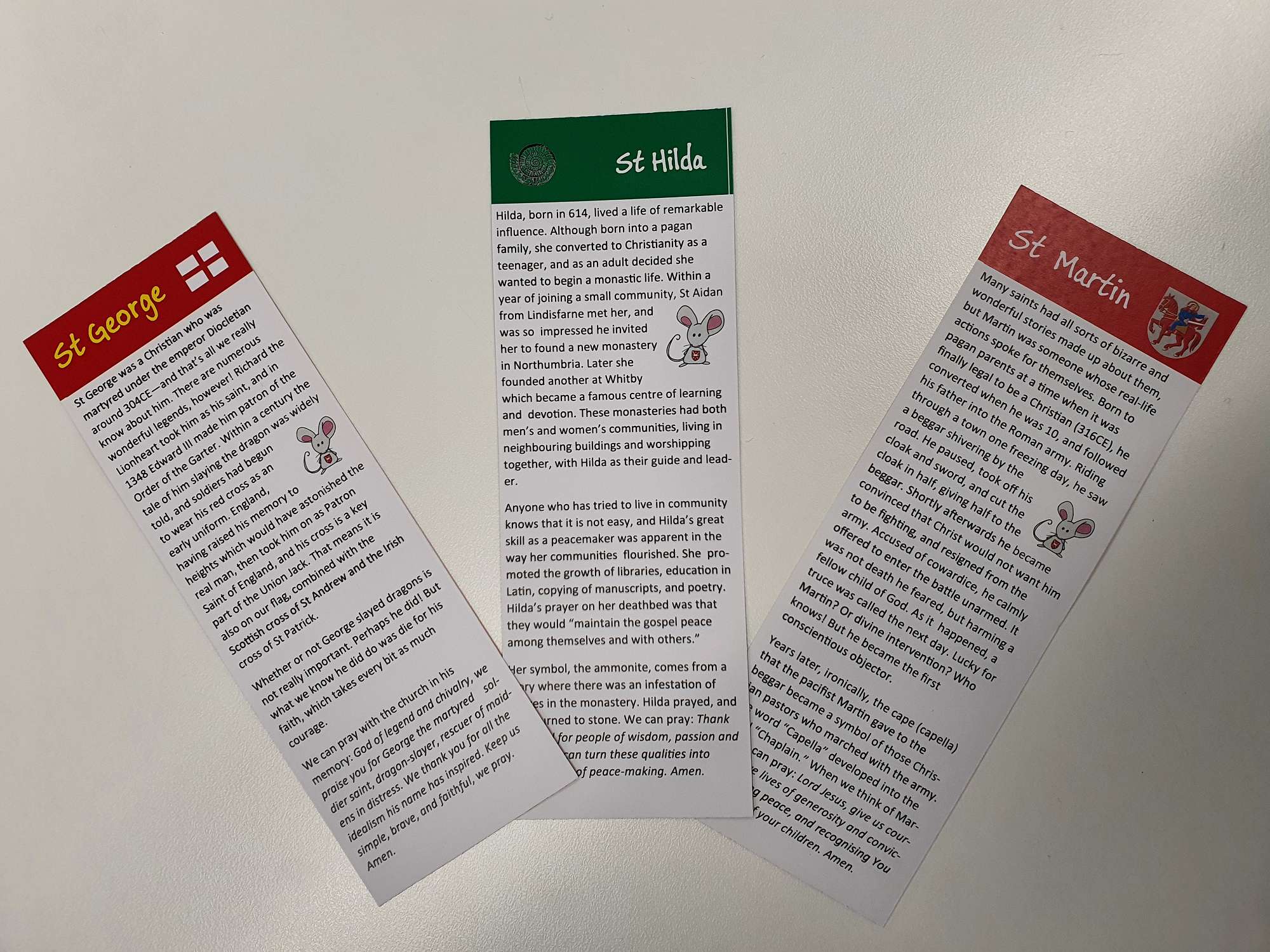 You'll see little bits of paper attached to these Hilda and George Mice. They're Bible verses to cheer the visitor along. Each Mouse also comes with a bookmark which tells a story behind the name of the Church (which is often the name of the Mouse too).