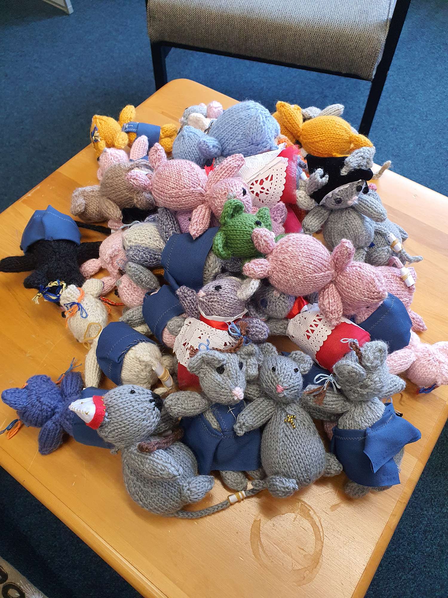A. Each church that wants to be involved decides on a craft mouse which will be their unique mouse. It may be knitted or crocheted, made of wood or made from local stones glued together—or whatever your local skills are. Just one design per church!