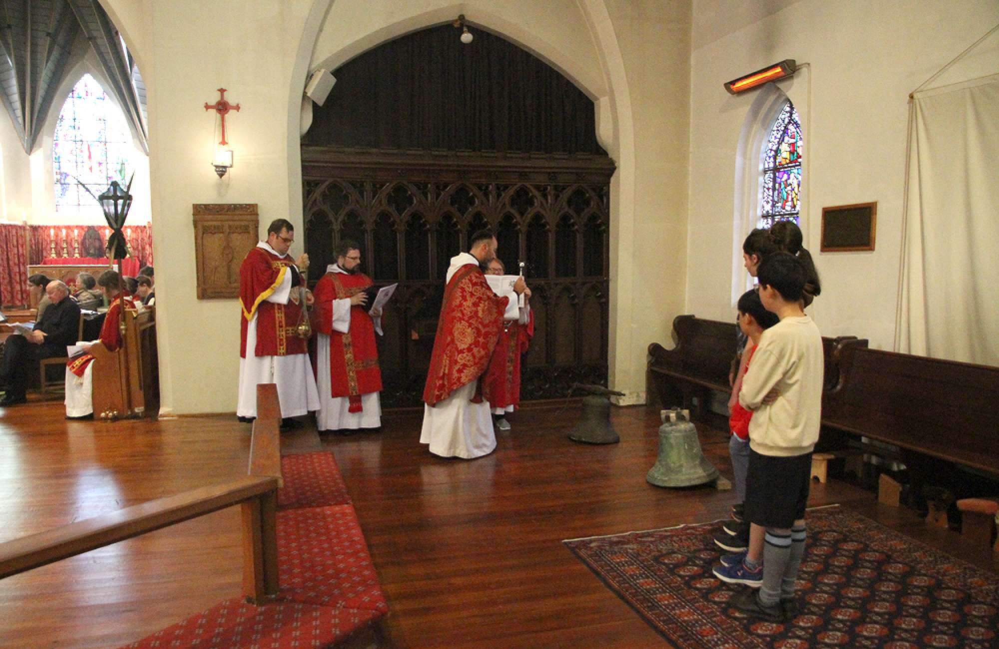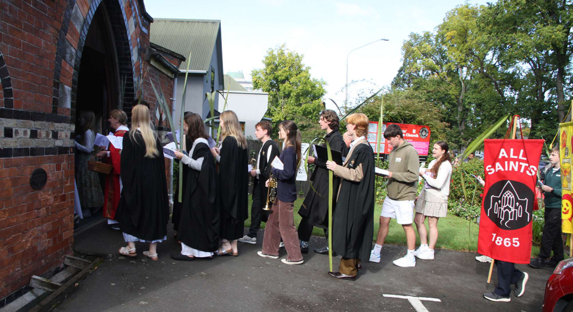 Palm Sunday was (thankfully) drier this year, with the service including the blessing of two bells from St Chad's Middlemarch and St Stephen's Hampden that are going to be installed in a new belfry on All Saints' hall.