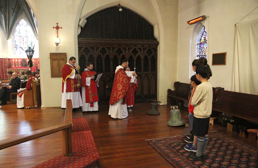 Palm Sunday was (thankfully) drier this year, with the service including the blessing of two bells from St Chad's Middlemarch and St Stephen's Hampden that are going to be installed in a new belfry on All Saints' hall.
