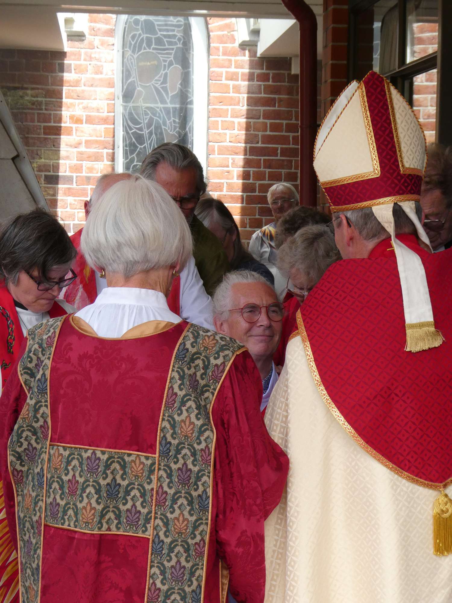Priests and lay people gathered around Joel to present him to Bishop Steven, who outlined what it was to hold this office in the church. Joel and the congregation confirmed his call to the priesthood, and later in the service Joel reaffirmed his faith and his commitment to what is involved in this vocation. Invocations, prayers, the laying on of hands took place, and Bishop Steve presented (at that exact moment!) the newest priest in the world.
