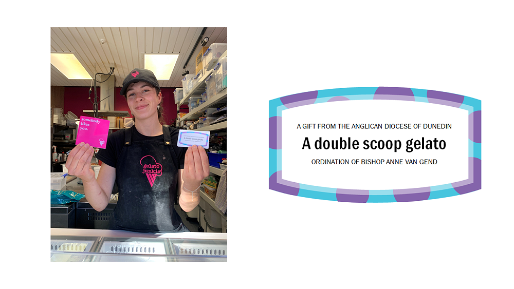 Those who attended the service may have noticed that St Hilda's Collegiate Kapa Haka group were down to lead Te inoi o te Atua - The Lord's Prayer, as part of the eucharist. Unfortunately the group had to cancel due to illness... but we had organised to give each member a double scoop gelato at Gelato Junkie in the Octagon. So... what to do? We delivered 20 vouchers for Gelato Junkie to give to their first 20 customers on Saturday... a random and expected gift from us to strangers! We hope it spread a little joy...