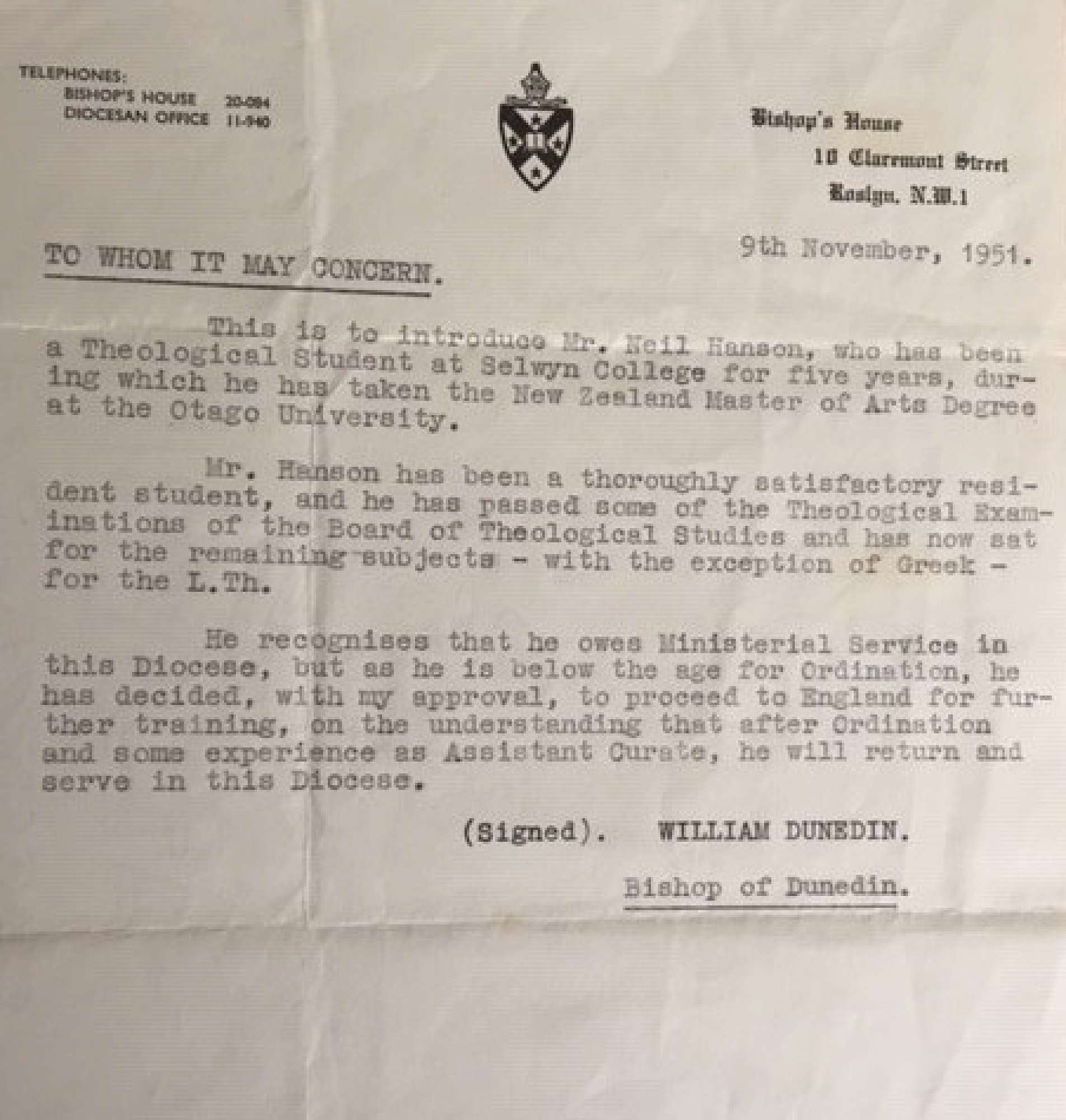 Neil was born to Doris and Bert Hansen in Hastings in 1929 and he had a big sister, Nola who was fifteen months older. Following the 1931 earthquake however, Neil’s father lost his business and eventually they moved to Wellington where his Mum established a shop in Newtown - now part of the Hospital carpark. Neil attended Newtown school as had his father and attended Rongotai College. He was offered a scholarship to Selwyn College, a hall of residence attached to Otago University where with ordination his goal, he completed his B.A. and a Certificate of Proficiency in Theology.