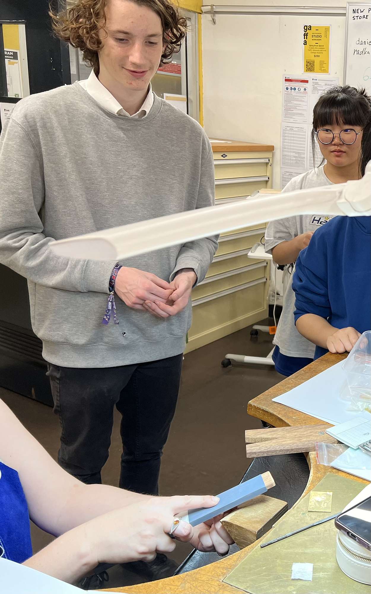 TAFE teachers and designers helped students work with professional standard tools and equipment. Students were each given a bag filled with small gifts and information about The Design Centre. The day ended with a delicious BBQ lunch on the terrace.