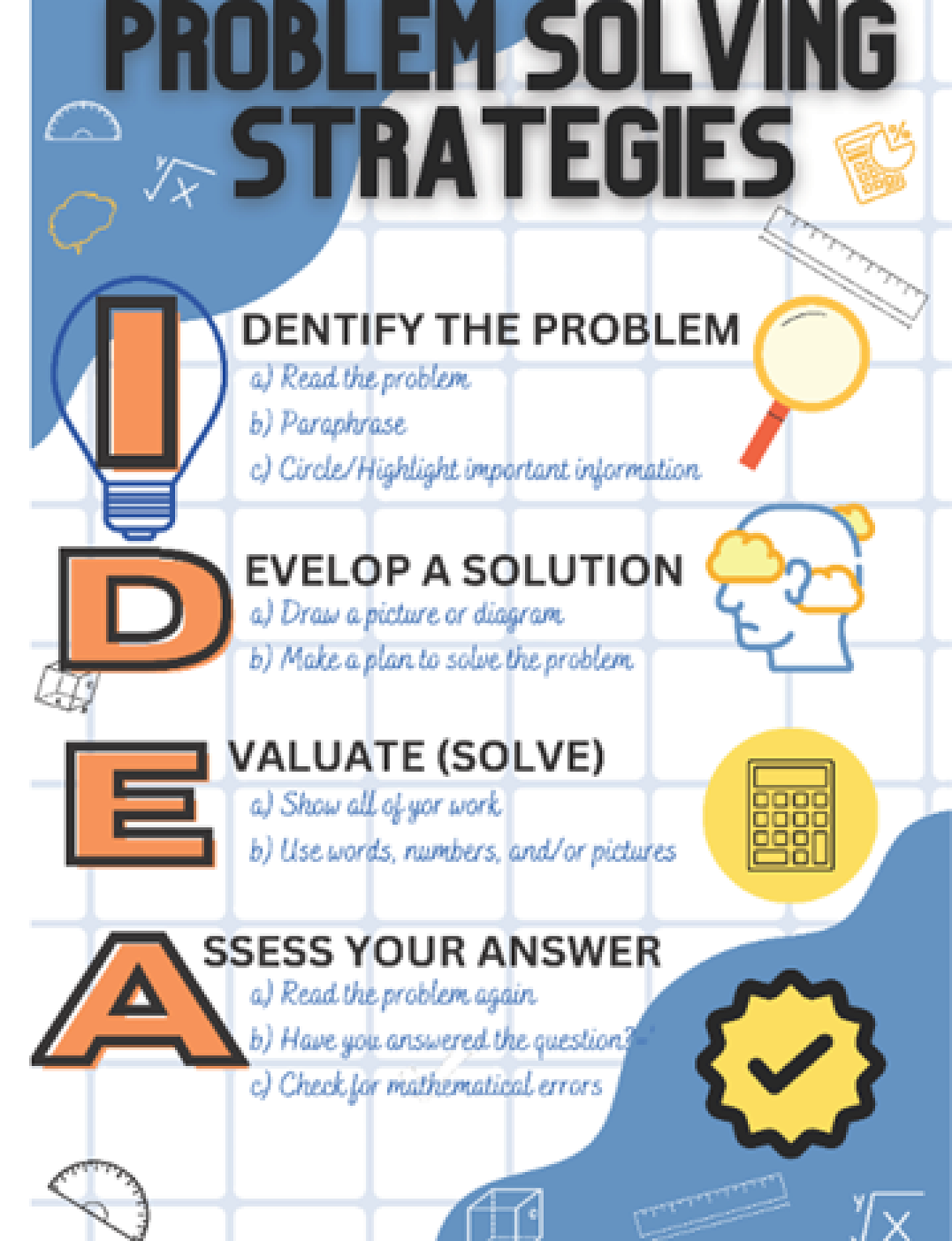 For our Year 7 students, we emphasise the IDEA strategy (Identify, Develop, Evaluate, and Assess) to strengthen problem-solving skills. This structured approach helps students break down complex problems into manageable steps, fostering confidence and logical thinking.