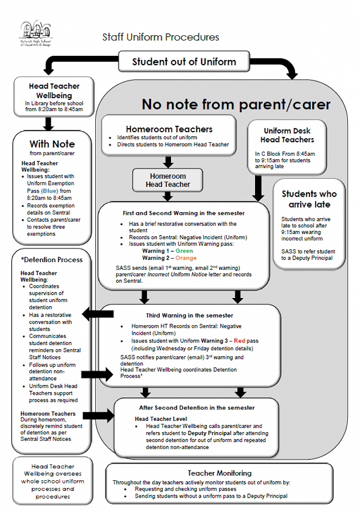 Wearing school uniform builds a sense of identity, ownership & pride as well as maintaining respect, responsibilities & relationships with the community