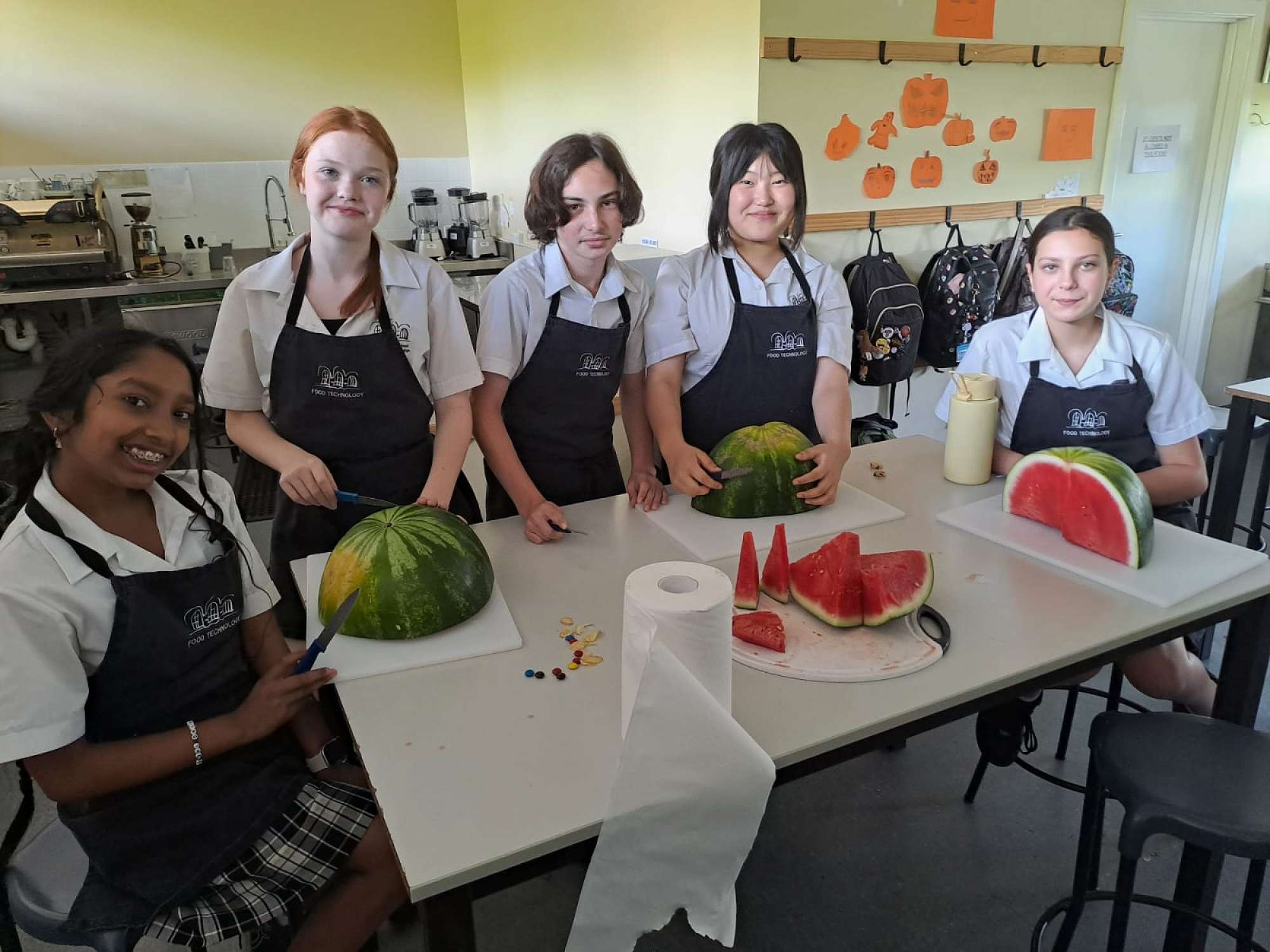 Our 7TecA students put their carving skills to festive use in woodwork this Halloween, with a creative twist – carving watermelons!