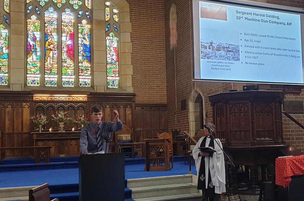 Our new School Captain Brendan recently attended a Remembrance Day Service at Holy Trinity Anglican Church where he participated in a reading.