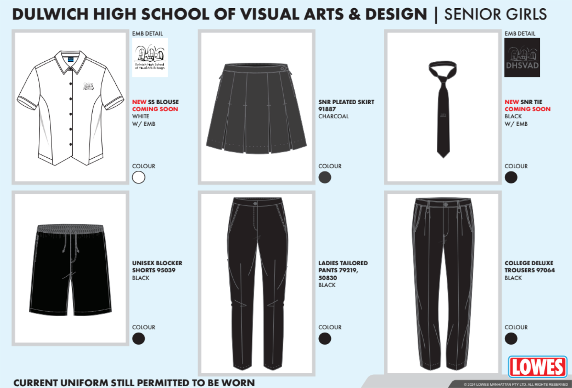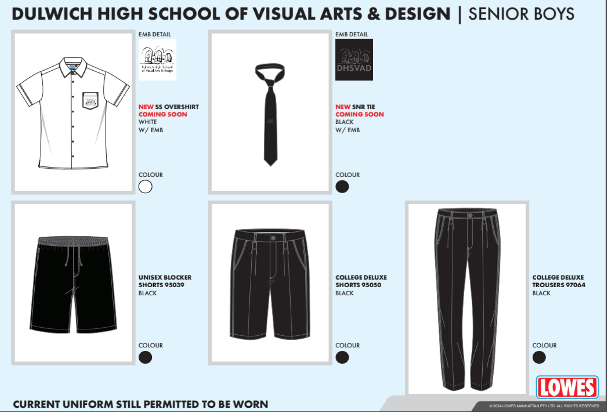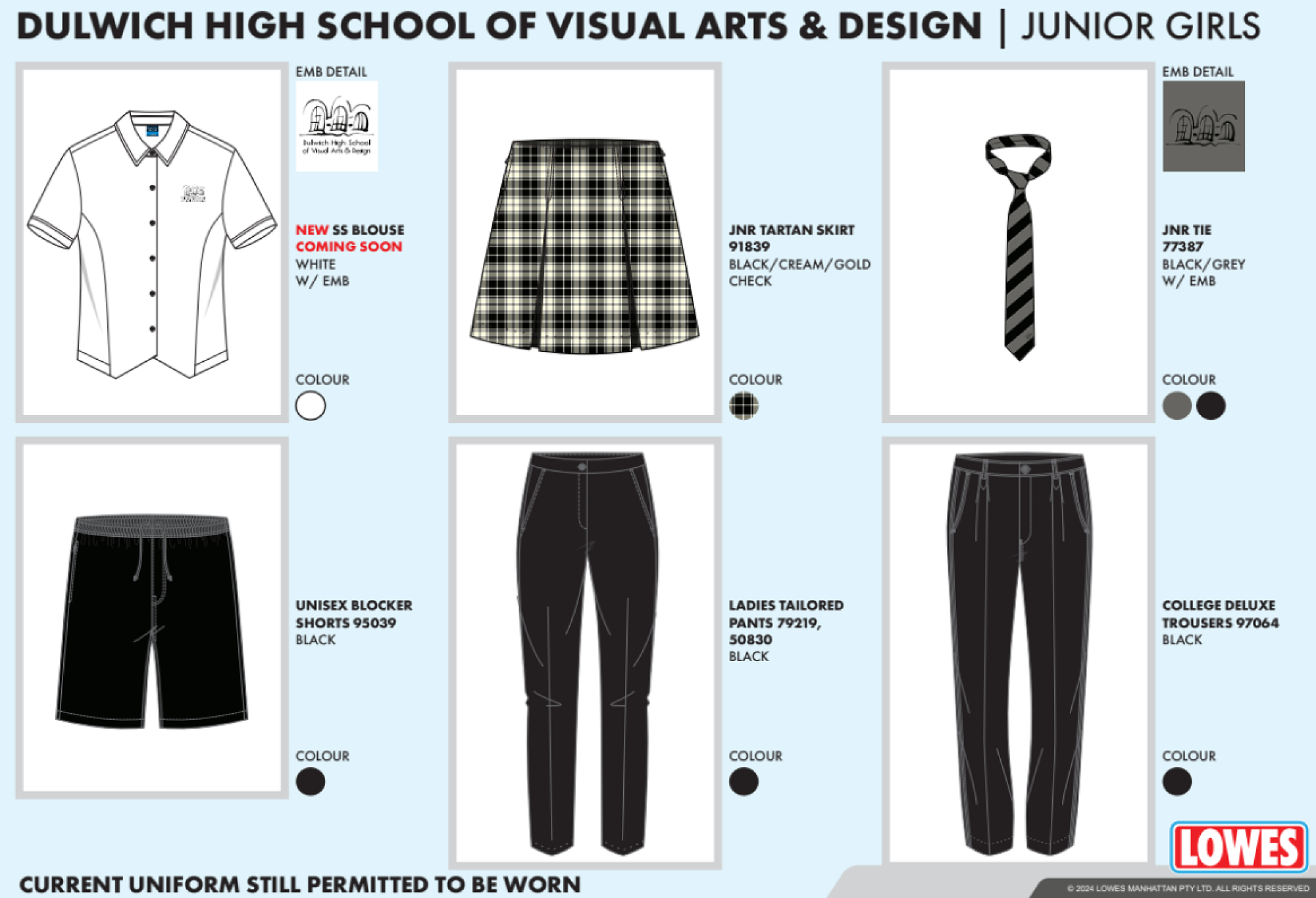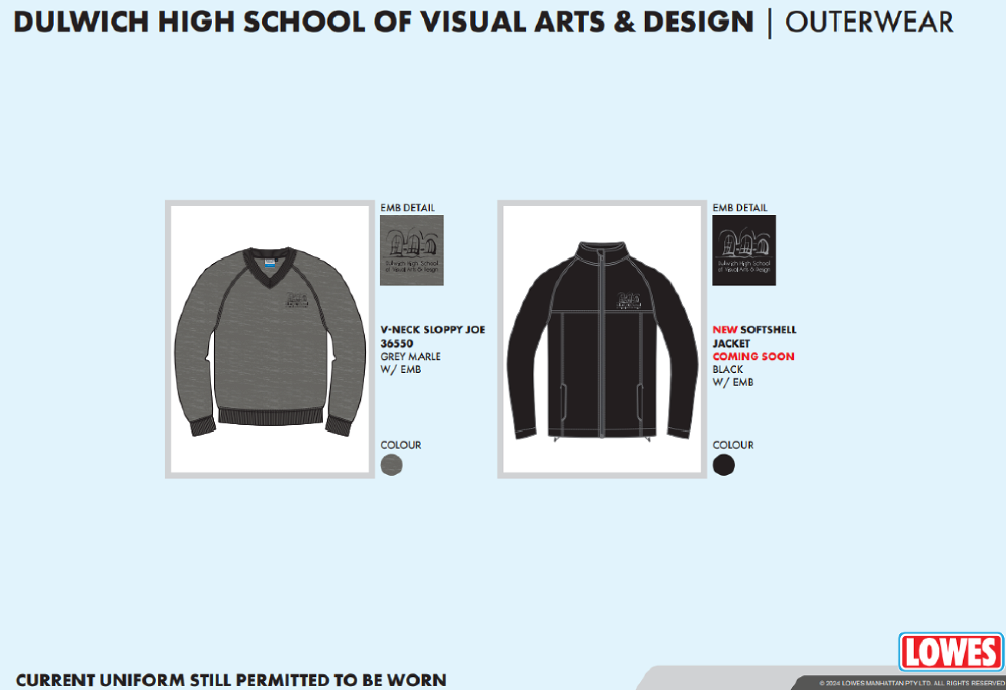 This year, we have some new uniform items available, with some others currently in production. Any 'discontinued' item bought at LOWES can be worn for at least this school year.