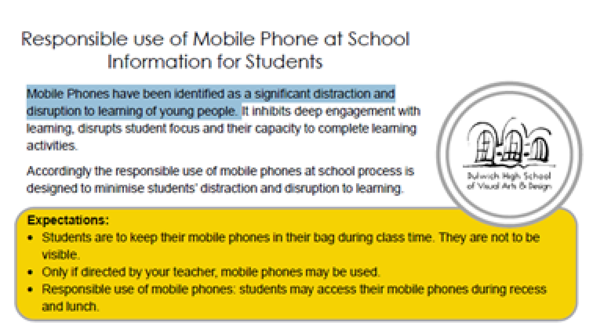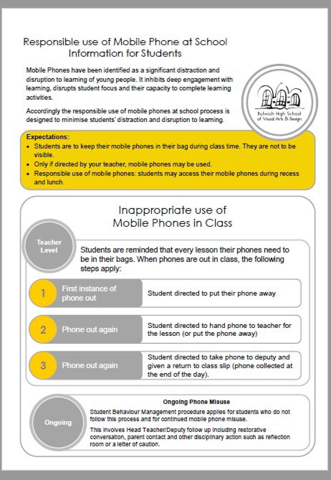 Responsible use of Mobile Phones at School
