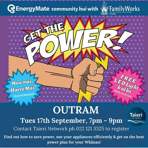 Find out how you reduce your energy costs, use your appliances efficiently, read and understand your power bill, and get on the best power plan for you and your whanau in this fun, interactive free workshop with a specialist EnergyMate coach.
