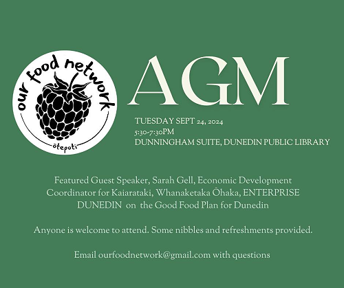 Featuring guest speaker Sarah Gell, Economic Development Coordinator | Kaiarataki, Whanaketaka Ōhaka, Enterprise Dunedin who is working on the Good Food Plan for Dunedin.