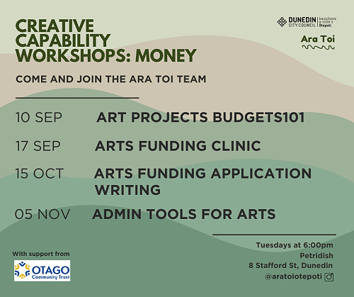 17 September: Arts funding clinic (email aratoi@dcc.govt.nz for a spot to talk about your funding application)