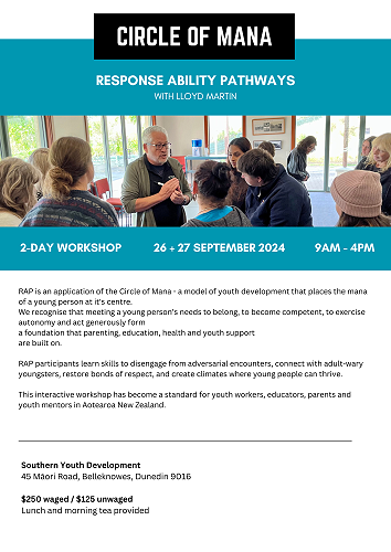 RAP is an application of the Circle of Mana - a model of youth development that places the mana of the young person at it's centre.