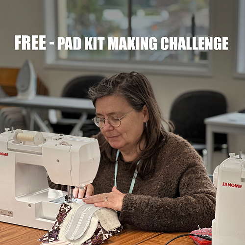 Meeting Two: Sew the pre-cut pads in a team effort, troubleshoot, and take home more material for session three.