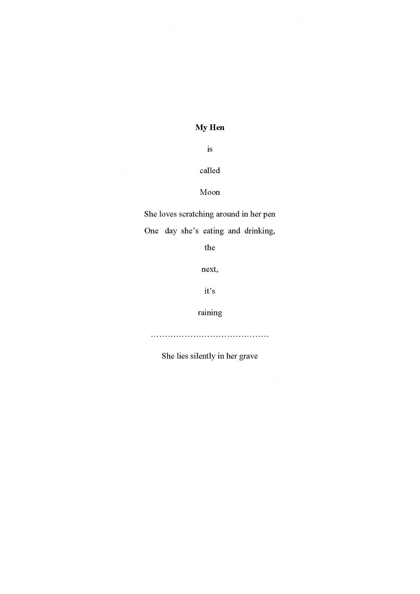 1st: Karuna Yang with My Hen