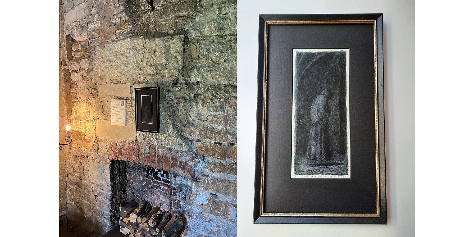 David's artwork, a stunning black and white pastel with coloured acrylic gel accents, brings to life the haunting tale of the Black Friar of Newstead Abbey, Byron’s ancestral home, a place of eerie, captivating history which inspired much of his poetry.