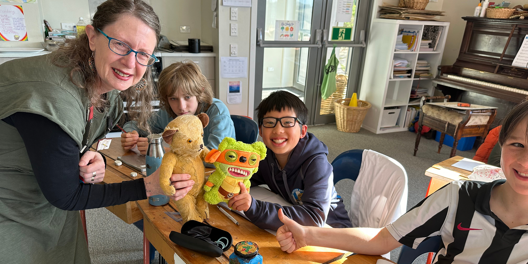 Our City of Literature South D Poet Lorikeet, Jenny Powell, recently visited Dunedin Rudolf Steiner School’s Class Kererū (Years 7 and 8) to conduct two engaging poetry sessions with well-loved, threadbare ‘Teddy’ as inspiration.