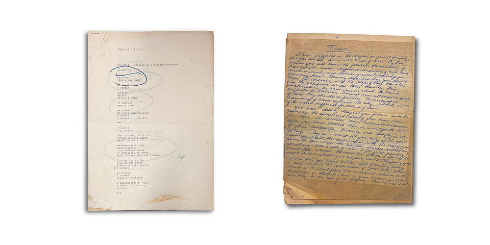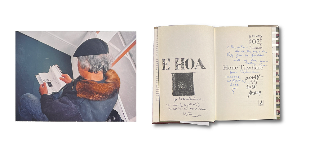 Presentation copies also form part of his library, gifted to Hotere by friends and well-wishers, many with personal inscriptions. He signed many of his books, often simply ‘Hotere’, and some contain fascinating marginalia and doodles.