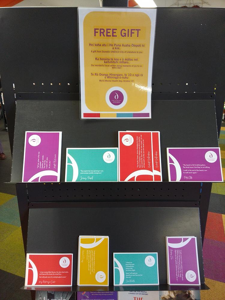 In the absence of an event, the City of literature team instead provided customers with the opportunity to take home gift sets of our City of Literature Author Postcards at all Dunedin Public Libraries and Bookbuses.